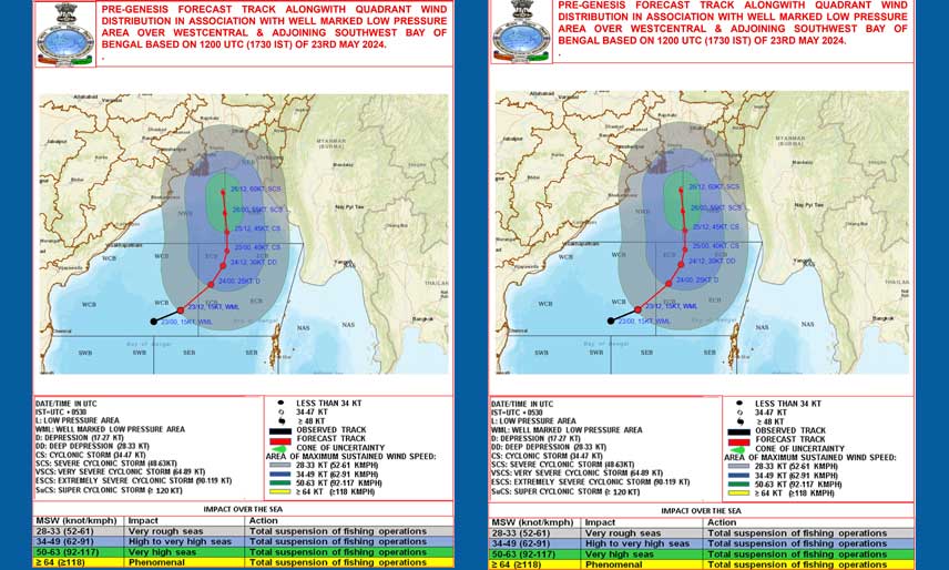મધ્ય પશ્ચિમ બંગાળની ખાડી પર રચાયેલ એક મજબૂત પ્રેશર મધ્ય બંગાળની ખાડી પર ગંભીર પ્રેશરમાં તીવ્ર બન્યું છે. તે 25 મેની સવાર સુધીમાં મધ્ય-પૂર્વ બંગાળની ખાડી પર ચક્રવાતી તોફાનમાં અને 25 મેની સાંજ સુધીમાં ગંભીર ચક્રવાતી તોફાનમાં રૂપાંતરિત થવાની સંભાવના છે.
